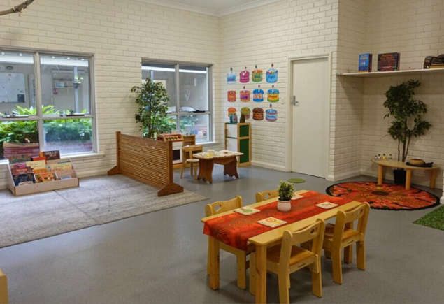 Our indoor and large outdoor play spaces have been designed to facilitate learning through play. We have individual rooms for the infants, toddlers and preschool age groups, although our flexible program also provides time for siblings and children of various ages to play together. Our environment supports children to build relationships with peers and educators, understand and appreciate the natural world, and to develop many skills including creative, music and early literacy and numeracy skills. You can learn more about our educational program here.