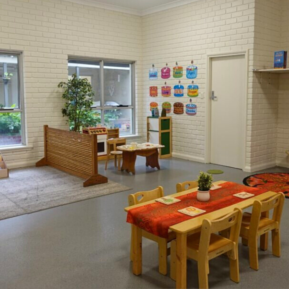 Our indoor and large outdoor play spaces have been designed to facilitate learning through play. We have individual rooms for the infants, toddlers and preschool age groups, although our flexible program also provides time for siblings and children of various ages to play together. Our environment supports children to build relationships with peers and educators, understand and appreciate the natural world, and to develop many skills including creative, music and early literacy and numeracy skills. You can learn more about our educational program here.